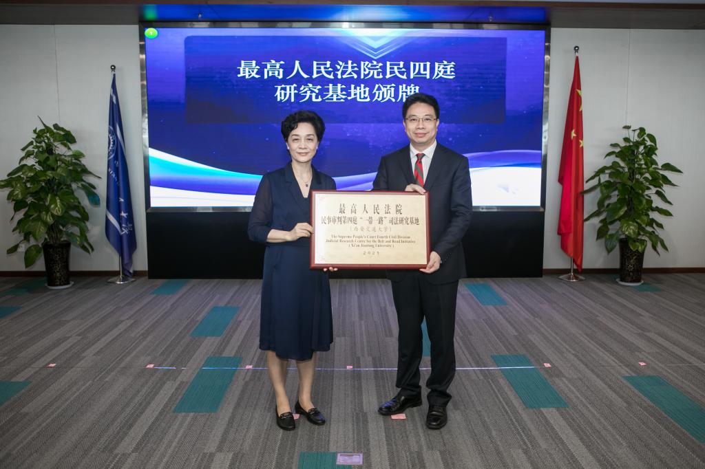 启动活动结束后,最高人民法院陶凯元副院长分别为15家研究基地颁牌。为深入学习贯彻习近平法治思想,全面推进依法治国,统筹推进国内法治和涉外法治,充分发挥高等院校、科研机构的研究优势,促进法学教育与司法实践的深度融合,实现优势互补、资源共享、发展共赢,最高人民法院民四庭在全国高校和科研机构中遴选出15家院校和机构建立了相应的研究基地。ld体育(中国)官方网站作为最高人民法院民四庭全国15家研究基地之一,被授予最高人民法院民四庭“一带一路”司法研究基地。