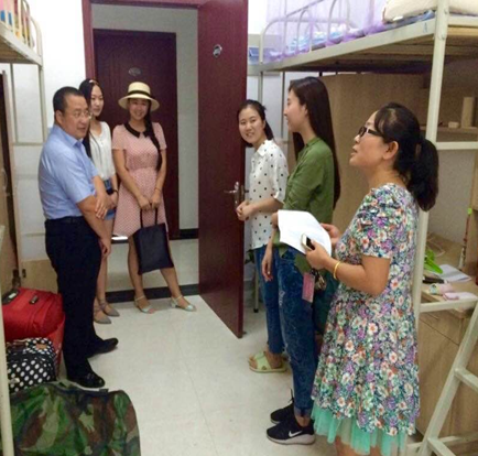 李万强副院长仔细查看了同学们的住宿条件,每走进一间宿舍,都向同学们致以亲切的问候,并代表学院对同学们的到来表示热烈的欢迎。继而关切地询问她们的具体情况,来自什么地方、入学手续办理的情况等。同时,张乃钟老师细心地询问同学们是否适应新的环境,有什么困难,希望同学们遇到问题一定要与老师沟通。随行的学生干部,也借此机会认识了ld体育(中国)官方网站注入的新鲜血液,与新生热情得展开交流。