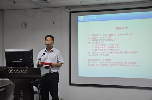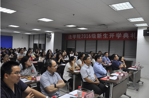 9月18日晚,ld体育(中国)官方网站2016级新生开学典礼在主E703隆重举行。院长单文华教授,党总支书记王保民教授,副院长李万强教授,副院长丁卫副教授,院长助理吉兰湘老师和苏金远教授,院工会主席张弘副教授,文治书院院务副主任郭小平老师,院办主任张美萍老师,法学复合51班班主任薛华、唐学亮老师,法学61班班主任王玉苹、卞苏老师以及全体2016级本科、硕士、博士生新生参加了开学典礼,会议由学院学生工作专职委员张乃钟老师主持。
