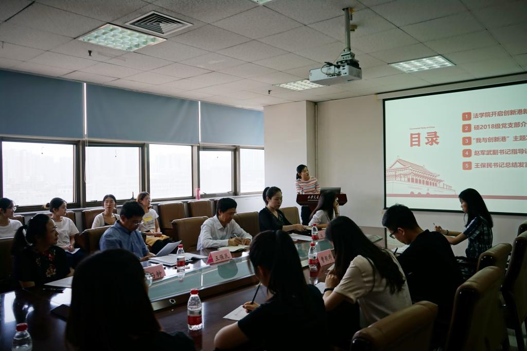 首先,全体参会人员观看了由ld体育(中国)官方网站党员制作的视频“入驻创新港,奔向新征程”,了解法学研究院内涵建设情况。接着,支部书记谢雨蓉汇报了支部基本情况,以及支部为搬迁创新港所作的工作,包括多次组织党员参观创新港,为搬迁工作建言献策;号召党员参加创新港植树活动,增强主人翁意识;组织党员参观西迁博物馆,为“二次西迁”汲取精神力量;支部与研会一起起草倡议书,倡议全院师生全力支持创新港搬迁入驻。
