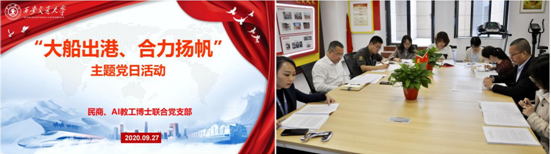 9月28日上午,民商法研究所、人工智能与信息安全法律研究中心联合党支部在创新港法学研究院党员之家,以“大船出港、合力扬帆”为主题举行了支部成立以来的第一次主题党日活动。