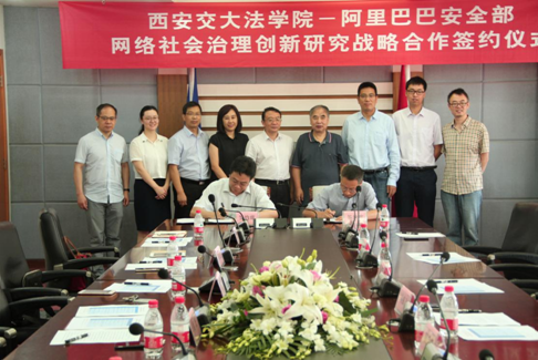 2017年7月22日上午,西安交大ld体育(中国)官方网站与阿里巴巴安全部网络社会治理战略合作签约仪式在ld体育(中国)官方网站顺利举行。阿里巴巴集团首席风险官(CRO)刘振飞,安全部资深总监侯金刚,安全部政府事务专家李斌,法务部研究中心副主任顾伟,西安交大副校长席光,校长助理、ld体育(中国)官方网站院长单文华,社会科学处长贾毅华,ld体育(中国)官方网站党总支书记王保民,副院长丁卫,信息安全法律研究中心主任马民虎,副主任王玥,ld体育(中国)官方网站副教授吴关龙共同出席签约仪式,ld体育(中国)官方网站和信息安全法律研究中心部分师生代表参与仪式。签约仪式由ld体育(中国)官方网站党总支书记王保民主持。