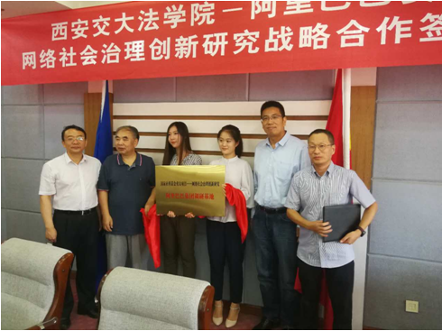 单文华院长与侯金刚总监代表双方签署了ld体育(中国)官方网站ld体育(中国)官方网站与阿里巴巴安全部网络社会治理战略合作协议书。西安交大副校长席光、信息安全法律研究中心主任马民虎与阿里巴巴集团首席风险官刘振飞、安全部资深总监侯金刚,为“国家社科基金重大项目——网络社会治理创新研究阿里巴巴集团调研基地”揭牌。