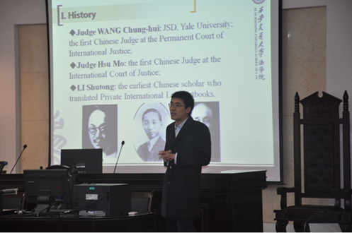 授课活动在ld体育(中国)官方网站模拟法庭举行。课前,副院长李万强教授、院长助理张生副教授向代表团表示热烈欢迎,并向代表团介绍了我院的历史发展以及学院在科学研究、人才培养、服务社会和对外交流合作方面取得的主要成就,其中特别介绍了我院的“中国法与国际商法”国际法律硕士项目、“中澳丝路班”本科生培养项目以及博士留学生的培养情况。