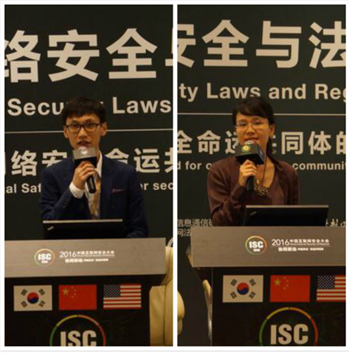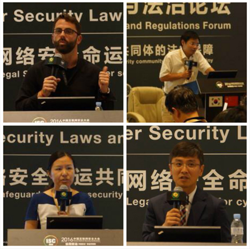 8月16日-18日,第四届中国互联网安全大会(ISC2016)在北京国家会议中心隆重召开。本届大会聚集了全球70多家相关机构和众多专家学者、企业代表,就世界网络安全形势、网络空间战略、安全攻防实战等主题进行了深入探讨。大会以“协同联动:共建安全命运共同体”为主题,设置了多个主题论坛。其中,网络安全与法治论坛备受瞩目,论坛邀请了国家互联网应急中心运行部副主任、正高级工程师严寒冰,法制日报社副社长周秉键,美国前国防部首席网络政策官、美国伯克利大学法学教授Jonathan Reiber,北京邮电大学互联网治理与法律研究中心常务副主任、副教授谢永江,中国信息通信研究院互联网法律研究中心主任李海英,韩国最高检大网络检查侦查官、网络安全法专家Chu Pill Hwan,ld体育(中国)官方网站信息安全法律研究中心主任、教授、陕西法学会信息安全法学研究会会长、中国网络安全协会副理事长马民虎,公安部第三研究所网络安全法律研究中心主任、副研究员黄道丽,ld体育(中国)官方网站信息安全法律研究中心博士马宁等国内外十余位顶级网络安全法领域专家就“网络安全命运共同体的法律保障”这一主题进行了广泛的研讨和交流。