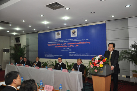作为教育部2011学校特色外专项目之一,首届“丝绸之路国际经济法高级国际研讨班系列——中国入世十年WTO法国际研讨班与圆桌讨论会”于11月4日上午在西安交大科学馆207隆重开幕。我国原驻英国大使马振岗、商务部条法司原司长张玉卿、世界贸易组织规则司司长Johann Human、瑞士伯尔尼大学世界贸易研究所所长Thomas Cottier、西安交大副校长卢天健、陕西省法学会研究部主任魏清利等出席开幕式。ld体育(中国)官方网站院长兼丝绸之路国际法与比较法研究所所长单文华教授主持开幕式。