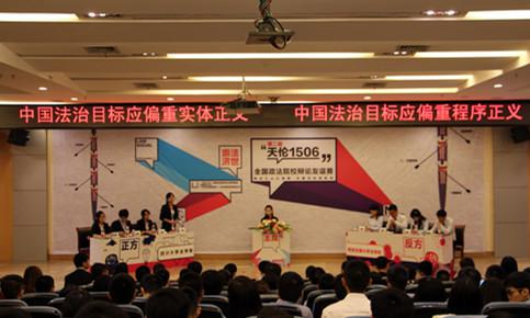 2014年5月24日,ld体育(中国)官方网站ld体育(中国)官方网站辩论队参加在重庆西南政法大学举办的第二届“天伦1506”全国政法院校辩论友谊赛。本次比赛的揭幕战由四川大学ld体育(中国)官方网站辩论队对阵西安交大ld体育(中国)官方网站辩论队,双方就“中国法治目标应偏重实体正义还是程序正义”展开辩论。