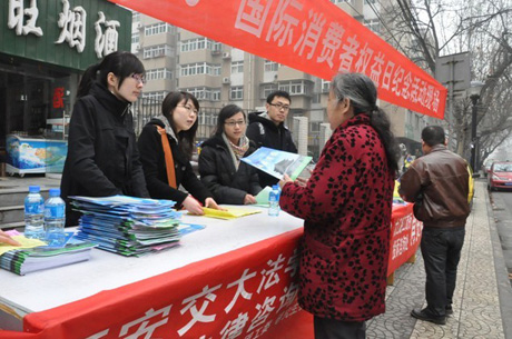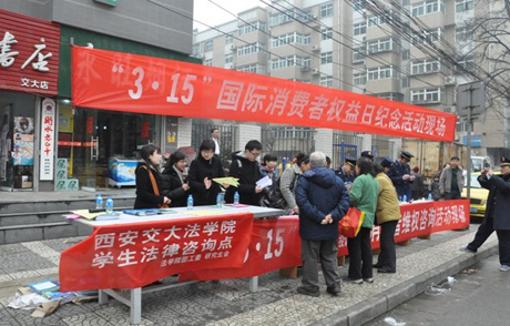 为了更好的宣传消费者权益保护法规和有关消费维权知识,3月15日上午10时,ld体育(中国)官方网站团工委、研究生会联合校工会、西安市太乙路工商局消费者协会在交大市场一条街上设立宣传咨询点,开展了一系列的宣传咨询活动。