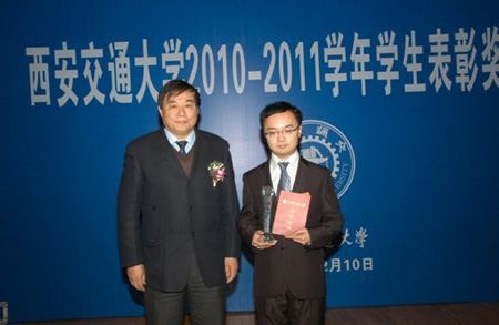 12月11日,在2010-2011学年ld体育(中国)官方网站“优秀研究生标兵”考核答辩中,我院硕986班齐鹏同学从学习科研、社会实践等方面做报告,展示了我院研究生的风采,受到考核组专家的一致认可与好评,最终获得2011年校级“优秀研究生标兵”荣誉称号。王建华书记逐一为获奖学生颁发了荣誉证书和奖品并和同学们合影留念。这是ld体育(中国)官方网站自2008年成立以来,我院研究生第二次获得该项荣誉称号。