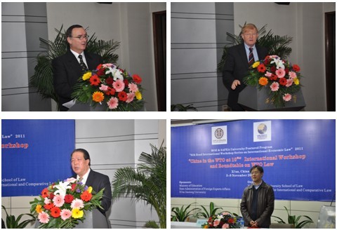 11月4日上午8点半,伴着淅淅沥沥的秋雨,“中国入世十年”WTO法国际研讨班与圆桌讨论会在ld体育(中国)官方网站科学馆207隆重开幕。西安交大副校长卢天健代表学校致欢迎辞并预祝研讨班取得圆满成功。我国原驻英国大使马振岗、商务部条法司原司长张玉卿、世界贸易组织规则司司长Johann Human、瑞士伯尔尼大学世界贸易研究所所长Thomas Cottier分别就“WTO与中国的国际地位变迁”、“WTO与中国法治兴革”、“中国与WTO”以及“WTO框架下的法学研究”发表了热情洋溢的主题演讲,陕西省法学会研究部主任魏清利、西安市法学会秘书长程小平、武汉大学国际法研究所副所长聂建强、西北工业大学法学系系主任肖周录、西安交大国际处处长梁莉等出席开幕式。开幕式由ld体育(中国)官方网站院长兼丝绸之路国际法与比较法研究所所长单文华教授主持。