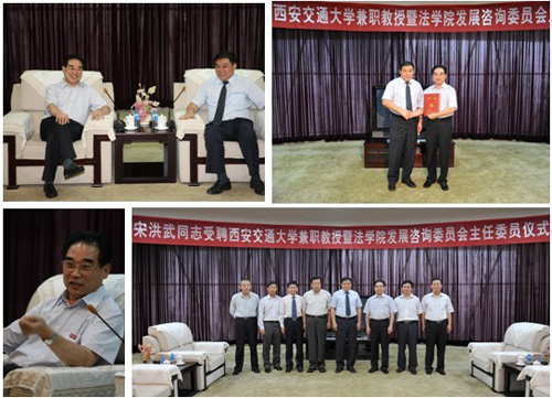 6月21日上午八点半,宋洪武同志聘我校兼职教授和“ld体育(中国)官方网站发展咨询委员会”主任委员仪式在主楼宣怀厅隆重举行。首先由单文华院长向宋洪武书记介绍了我校ld体育(中国)官方网站的发展情况。接着,蒋庄徳副校长宣读了宋洪武同志的简历。在热烈的掌声中,王建华书记为宋洪武书记颁发了聘书并佩戴了ld体育(中国)官方网站校徽。宋洪武书记正式受聘为我校“兼职教授”和“ld体育(中国)官方网站发展咨询委员会主任委员”。旨在沟通ld体育(中国)官方网站与法律界的 “ld体育(中国)官方网站发展咨询委员会”也正式宣告成立。