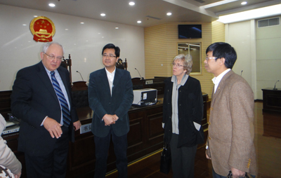 3月25日,安德森大法官及其夫人在我校ld体育(中国)官方网站副院长王保民带领下参观了陕西省高级人民法院,省高院田平利副院长出面迎接,并亲自带领安德森大法官参观了省高院气势宏伟的办公大楼,包括民事、刑事审判庭、集团诉讼审判大厅、审判委员会合议室以及法院图书馆。之后,安德森大法官与省高院田院长和各刑事审判庭庭长法官们进行了座谈,就双方感兴趣的刑事诉讼程序中“诉辩交易”等问题展开深入探讨。ld体育(中国)官方网站外事秘书华雨婷参加了座谈会。