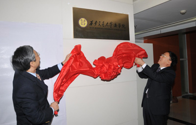仪式上,郑南宁校长和张文显院长先后发表重要讲话。郑南宁教授强调指出了全球化、信息化背景下法学教育的高度重要性,表达了学校校在“985三期”建设等方面对法学学科的高度重视,并希望ld体育(中国)官方网站在人才引进和科研教学等方面加快步伐,从此揭开我校法学史上崭新的一页。随后,张文显教授在讲话中充分肯定了我校ld体育(中国)官方网站近年来所取得的成绩,并表示将以各种方式尽力支持我校法学尽早实现跨越式发展目标。仪式开始前,张教授还在郑南宁校长等的陪同下参观“丝绸之路国际法和比较法研究所”和新启用的ld体育(中国)官方网站教师集体办公室。