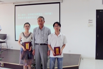 接着,学生工作专职委员张乃钟代表学院宣布了法律硕士专业学位学院奖学金获奖学生名单。单文华院长、彭沪生书记、马治国副院长几位院领导分别为获得一等、二等、三等奖学金的六名同学颁发了获奖证书。获奖学生代表郭晓雯同学做了发言,她感谢学院对法律硕士研究生同学们的关怀和鼓励,表示在今后的学习和生活中,法律硕士一定会不辜负学院和老师的期望,以更加优异的成绩向学院汇报。