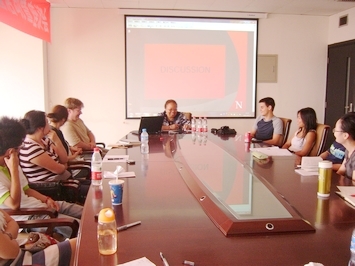 在本次交流活动中,来自UNL的三名博士生参与了ld体育(中国)官方网站开设的国际经济法、中国法、法律实务等课程的课堂教学。这些课程均采取互动式的英语教学方式,一方面老师讲授法学基本理论,另一方面同学们积极参与讨论,提出分析并探讨问题。6月30日下午,特别举行了一场两校ld体育(中国)官方网站师生座谈会,老师们专门解答外国学生对中国法律所感兴趣的研究问题。正在我校访问的伦敦大学中国法高级讲师朱三株博士也参加了学生答疑活动。本科中文专业的美国学生Kyle主要研习民事法;学习行政法的Holly就土地法、城市规划法提出了很多问题;Neil则与师生们就一些科技法问题进行了交流。三位同学表示他们非常高兴有机会到中国学习法律,通过课程学习和老师的解惑,他们对中国法与国际法的一些研究话题有了更加清晰的认识和理解,回美国后他们将撰写学习报告或研究论文。