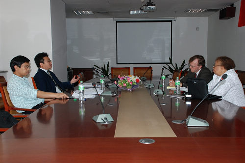 6月2日上午, 林肯ld体育(中国)官方网站院长Steven Lester Willborn教授、副院长Anna Williams Shavers教授以及其他两位成员,在主楼601会议室,与ld体育(中国)官方网站院长单文华教授、副院长马治国教授、副院长副书记王保民副教授、以及部分博士、硕士研究生代表,举行座谈。会议伊始,单院长代表ld体育(中国)官方网站对林肯ld体育(中国)官方网站代表团的来访表示了欢迎,并表示希望双方利用访问的机会在师生互访、学术交流和联合办学等方面达成实质性的协议。双方在各自介绍了其法学学科的发展情况后,展开互动交流,气氛融洽,加深了双方相互间的了解。