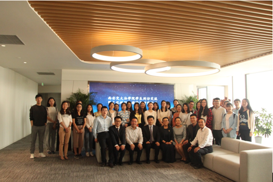本次交流活动伊始,在律所运营总监孙婷和工作人员的引导下,西安交大ld体育(中国)官方网站三十余位研究生参观了办公区、党建活动室、茶歇区以及会议室等律所的硬件设施,感受到了居于全国领先的律师事务所的办公环境。