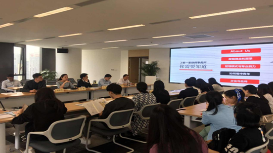 随后海普睿诚律师事务所代表人员和交大ld体育(中国)官方网站的同学们在会议室就坐。首先由海普睿诚律师事务所行政总监种贵兴表达了对ld体育(中国)官方网站马治国教授一行的欢迎及感谢;其次由运营总监孙婷详细讲解了海普睿诚律师事务所的规模、业务领域、专业建树、发展历程和社会公益等情况;再由律所最年轻的高级合伙人王奇律师以其自身的从业经历为同学们讲授了成为一名律师所应具备的能力与素质。