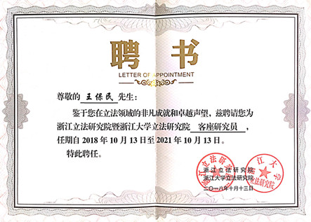 10月13日,首届之江立法论坛暨立法研究院学术委员会成员、客座研究员、兼职研究员聘任仪式在浙江杭州举办。论坛以“新时代地方立法”为主题,以推进立法领域高层次理论研究,提升立法研究水平,推动立法工作,以更好的适应新时代新要求。我校ld体育(中国)官方网站教授、立法与党内法规研究中心主任王保民受聘为“浙江立法研究院暨浙江大学立法研究院”客座研究员,并应邀作为与谈人在论坛上做了点评发言。
