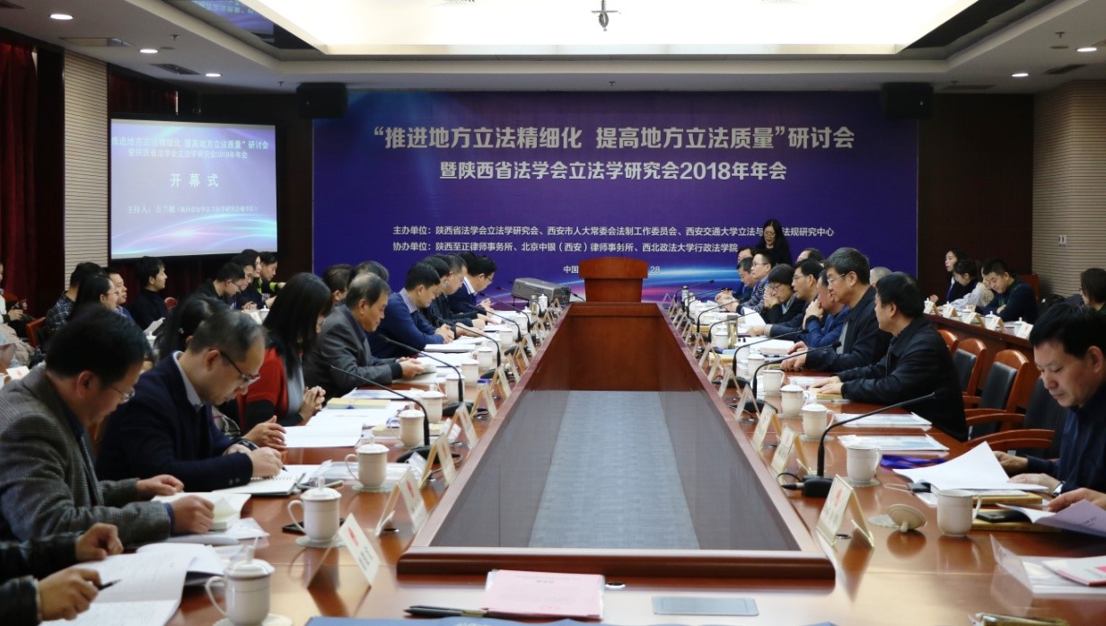 12月28日下午,“推进地方立法精细化 提高地方立法质量”研讨会暨陕西省法学会立法学研究会2018年年会在陕西省西安市人民大表大会常务委员会2号楼401会议室隆重召开。本次会议由陕西省法学会立法学研究会、西安市人大常委会法制工作委员会、ld体育(中国)官方网站立法与党内法规研究中心主办,陕西至正律师事务所、北京中银(西安)律师事务所、西北政法大学立法研究中心、西北政法大学行政ld体育(中国)官方网站协办。来自ld体育(中国)官方网站、西北政法大学、西北大学、陕西师范大学、西北工业大学、中共陕西省委党校、延安大学、中南财经政法大学、陕西省社会科学院等教学科研单位和来自陕西省委政法委、陕西省人大常委会、西安市人大常委会以及宝鸡、商洛、铜川、榆林、韩城等陕西省其它地市人大常委会、西安市人民检察院、西安市中级人民法院、陕西至正律师事务所、北京中银西安律师事务所等法律实务部门的80余位代表齐聚一堂,围绕“推进地方立法精细化 提高地方立法质量”的主题展开了深入探讨。