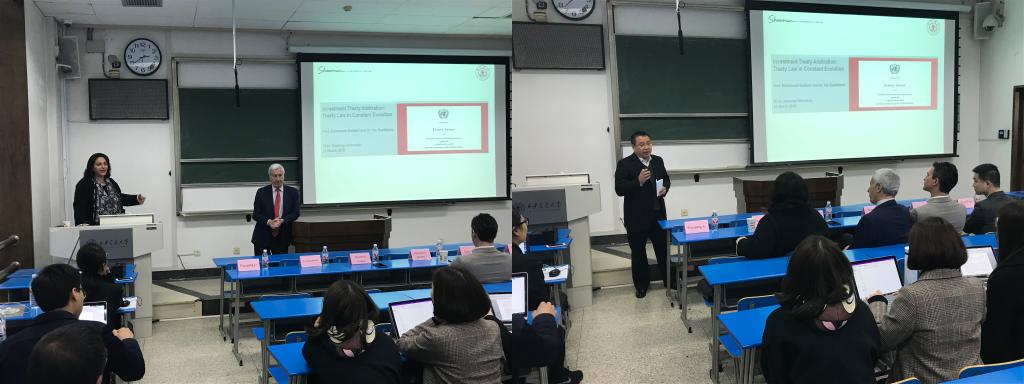 应ld体育(中国)官方网站ld体育(中国)官方网站院长单文华教授邀请,最高人民法院国际商事法庭首批专家委员会委员、国际著名仲裁员Emmanuel Gaillard教授日前来访ld体育(中国)官方网站ld体育(中国)官方网站开展座谈交流,并做了“中国国际投资仲裁常设论坛”的首场讲座——“国际投资仲裁:不断演变中的条约法”。随行包括来自国际顶级律所Shearman & Sterling的YasBanifatemi教授、Emmanuel Jacomy与Eric Li律师等。
