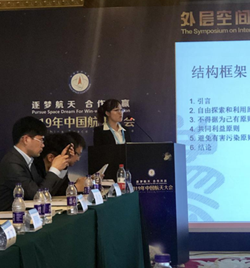会上,许丰娜在分论坛“外层空间新兴问题国际法治研讨会”中作了精彩报告。她以“太空采矿之初的国际空间法原则”为主题,首先在外空采矿的背景下对这些原则进行解释,然后阐述了外空委法律小组委员会和海牙工作组框架草案中的相关内容。对于其中的一些具体观点和法律制度,她在上述原则的基础上作了进一步的审慎分析和评价。最后,就外空采矿活动的合法性得出一些结论,并呼吁国际社会合作建立一个国际法律框架。她的相关论文也荣获本届年会优秀论文二等奖。