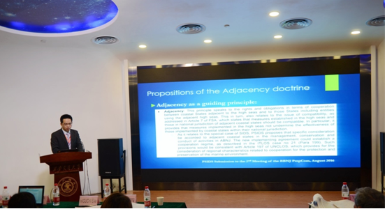 ld体育(中国)官方网站教授苏金远作题为《BBNJ谈判中的“毗邻”问题》的报告