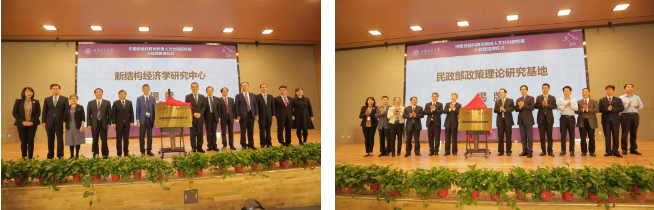入驻仪式中揭牌成立了“新结构经济学研究中心”与“民政部政策理论研究基地”两家科研合作基地(中心)。新结构经济学研究中心是ld体育(中国)官方网站经济金融研究院与林毅夫教授担任院长的北京大学新结构经济学研究院合作成立的高端智库机构。民政部政策理论研究基地是民政部在ld体育(中国)官方网站公共政策与发展研究院设立的合作共建智库。