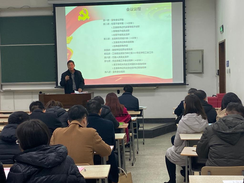 2020年1月11日下午,ld体育(中国)官方网站在主B-105教室召开全院大会全面传达学校寒假工作会议精神,总结2019年工作业绩,部署2020年工作安排。ld体育(中国)官方网站领导班子成员和全体教职工参加了此次会议。会议由ld体育(中国)官方网站工会副主席张乃钟主持。