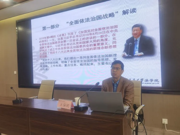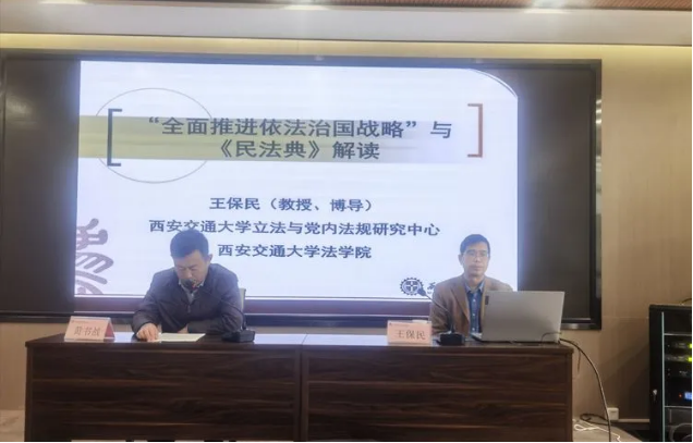 为了深入学习贯彻习近平总书记全面依法治国新理念新思想新战略,提高年轻干部尊法学法守法意识,11月4日,灞桥区司法局邀请北京大学法学博士,ld体育(中国)官方网站ld体育(中国)官方网站党委书记、教授、博导王保民为灞桥区优秀年轻干部专业化能力提升培训班的干部讲授《学习贯彻习近平全面依法治国思想-解读民法典》的专题课。
