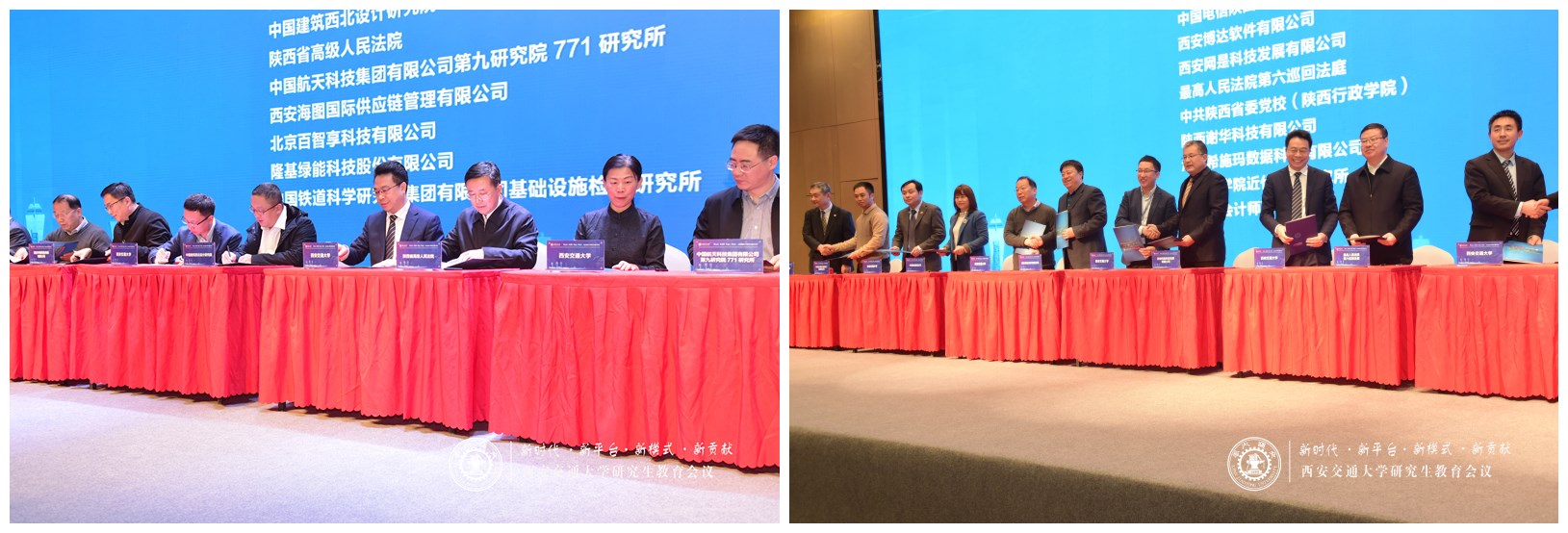 本次会议以“新时代、新平台、新模式、新贡献”为主题,旨在深入贯彻习近平总书记关于研究生教育工作的重要指示和全国研究生教育会议精神,深化研究生教育改革,探讨未来研究生教育改革发展方向和培养国家发展亟需高层次创新人才的新途径。ld体育(中国)官方网站校长王树国教授、教育部研究生司徐维清副司长、陕西省教工委书记王建利书记分别致辞,副校长郑庆华教授作主旨报告,70多家政府机构、龙头企业、行业单位与我校签署现代产业学院共建协议,推进产教融合,助力中国西部科技创新港内涵发展。