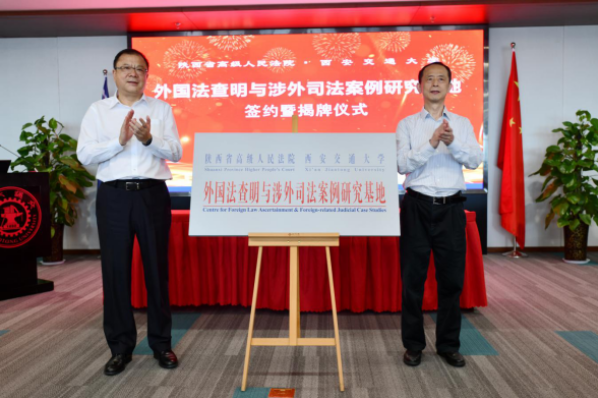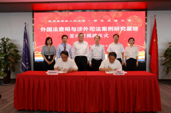 7月9日上午,陕西省高级人民法院—ld体育(中国)官方网站外国法查明与涉外司法案例研究基地签约暨揭牌仪式在中国西部科技创新港涵英楼举行。陕西省高级人民法院党组书记、院长李智,ld体育(中国)官方网站党委书记卢建军共同为研究基地揭牌。陕西省高级人民法院副院长巩富文、ld体育(中国)官方网站副校长席光签署共建协议。
