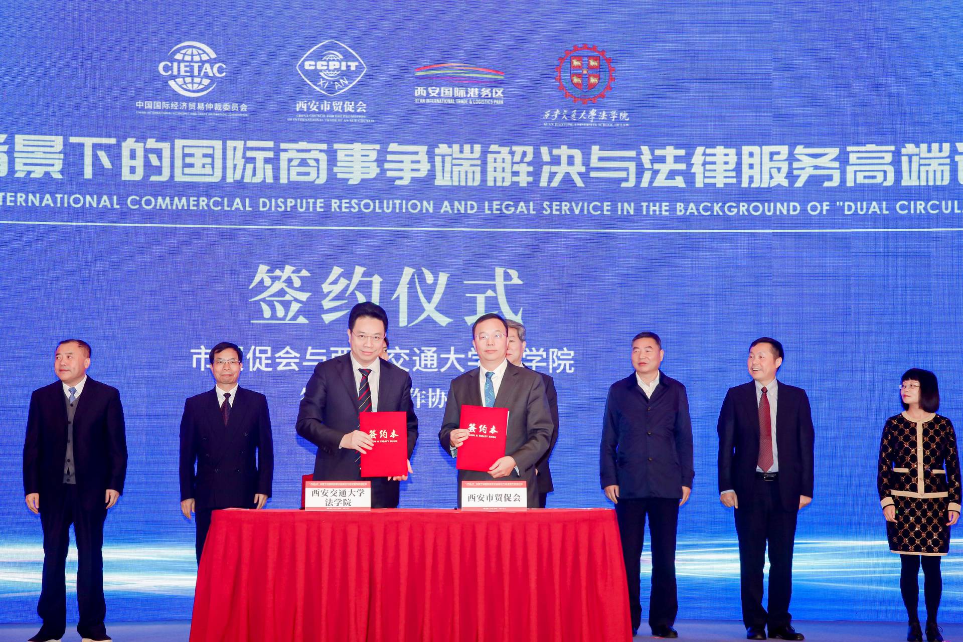 10月13日上午,由西安市人民政府与中国国际经济贸易仲裁委员会(简称“贸仲”)共同主办,西安市贸促会、ld体育(中国)官方网站ld体育(中国)官方网站等共同承办的“双循环”背景下的国际商事争端解决与法律服务高端论坛在西安成功举办。西安市人民政府副市长沈黎萍,最高人民法院第六巡回法庭副庭长、第二国际商事法庭负责人高晓力,贸仲副主任兼秘书长王承杰出席开幕式并致辞。来自西北五省律师协会、科研院校、法律服务机构、商协会及企业等代表150人现场参会,上万人在线收看。我院院长单文华教授应邀参会并主持论坛主旨演讲环节。