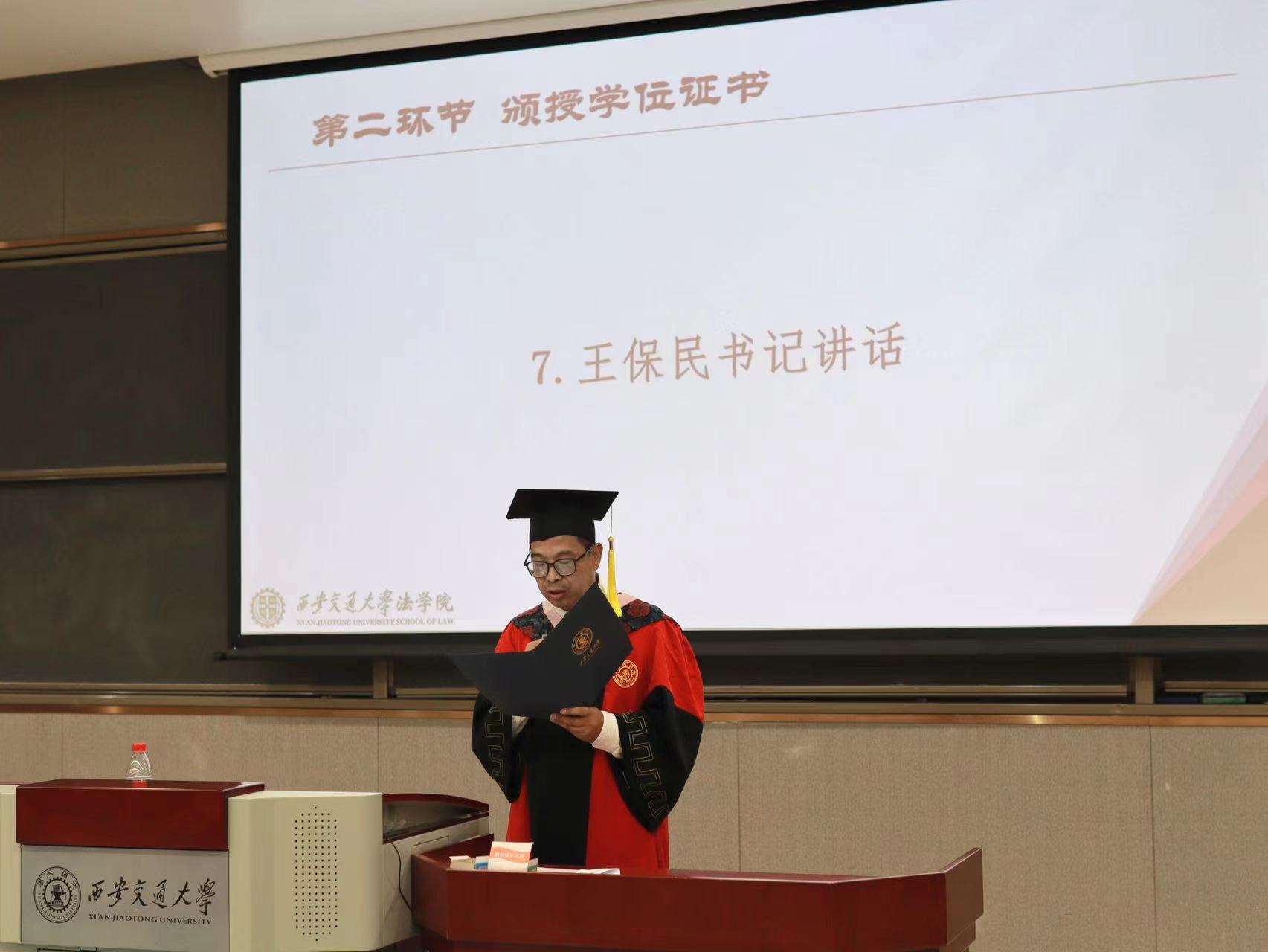 随后,举行ld体育(中国)官方网站2023届学生学位授予仪式,由王保民书记、马治国教授、丁卫副院长为毕业生授予学位证书。同学们从恩师手中接过学位证书,为自己的求学生涯写下完美的注脚,更在走向社会前,接受了一次庄严的精神洗礼。