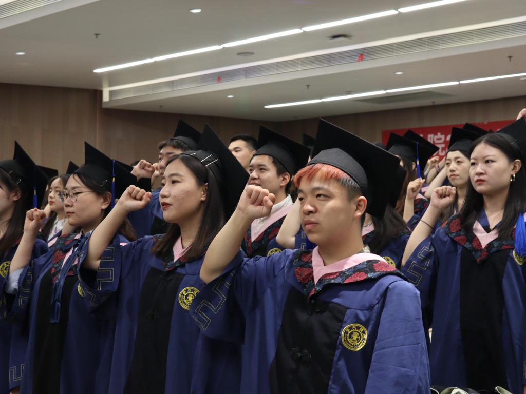 作为法律学子,在即将奔赴祖国各地建功立业之际,全体毕业生在张乃钟老师的带领下庄严宣誓《ld体育(中国)官方网站法科生誓词》。