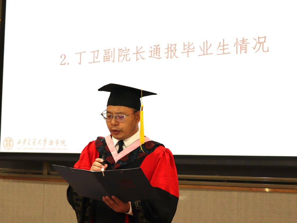 丁卫副院长首先通报了2023届毕业生情况,他表示,本届ld体育(中国)官方网站毕业生在各自领域展现出了出色的才能和潜力,经过长时间的学习和实践,他们成功地进入了国内外知名律师事务所、政府机构、企业法务部门、研究机构以及高等院校等各个领域,将为社会的发展和法治建设贡献自己的力量,展现出法学专业研究生的优秀素养和综合能力。