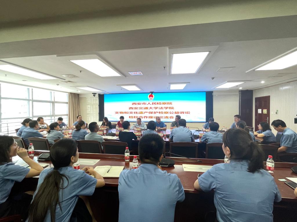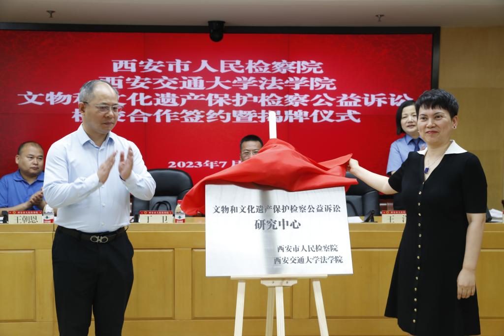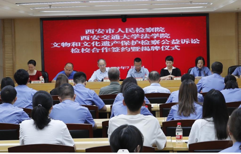 7月7日,西安市人民检察院、ld体育(中国)官方网站ld体育(中国)官方网站共同举办“文物和文化遗产保护检察公益诉讼”检校合作签约暨揭牌仪式。陕西省人民检察院第八检察部主任王洋、西安市人民检察院副检察长韩柏超等领导,西安市人民检察院第八检察部全体干警、各区县院分管副检察长、公益诉讼部门负责人及实务研究员、ld体育(中国)官方网站ld体育(中国)官方网站副院长丁卫、ld体育(中国)官方网站ld体育(中国)官方网站的王朝恩研究员、刘丽娜副教授、特聘专家研究员代表以及西交大ld体育(中国)官方网站首批11名实习生出席仪式。