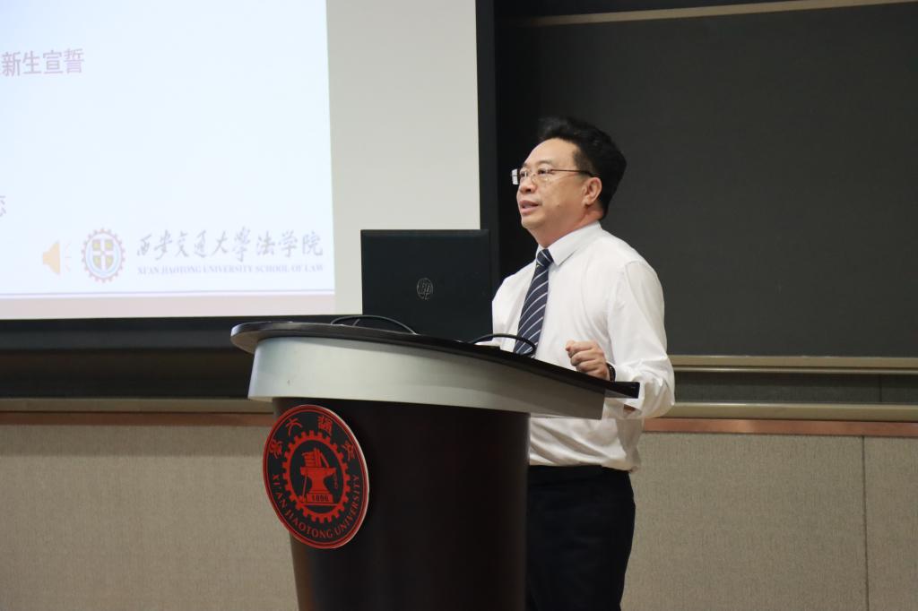 单文华院长首先对全体新生的到来表示热烈的欢迎。作为一个进入ld体育(中国)官方网站三十六年之久的“老学生”,他向大家分享了法学学习的心得体会。他认为交大学生突出的优点是实诚,法学研习也迫切需要“实诚”,就“实”而言,法学是一个实践性很强的学科,在学习过程中要身体力行、真实从事、扎实勤恳;就“诚”而言,法学也是一个主要运用语言文字的学科,要想通过语言来有所成就,那么就必须要正心诚意,尊重事物的客观规律,坚持主客观相统一来进行学习,方能学有所成。