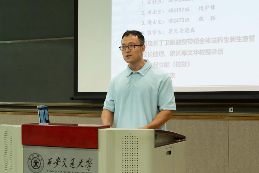 崇实书院段继超主任援引了联合国教科文组织报告中总结的构成21世纪人类终身学习目标的五大支柱——学会求知、学会做事、学会相处、学会发展、学会改变,他将这五点送给同学们作为应对大学学习、生活和未来规划与发展的艰难之际时的锦囊妙计。段主任寄语每一位ld体育(中国)官方网站的新同学在求学生涯中继承精勤求学之传统,在仰望星空的同时脚踏实地,在接受正气、正道、正义、卓越的ld体育(中国)官方网站精神的同时,弘扬社会主义法治精神,维护社会公平正义,为强国建设、民族复兴伟业做出无愧南洋法脉的时代贡献,以交大之光,为世界之光。