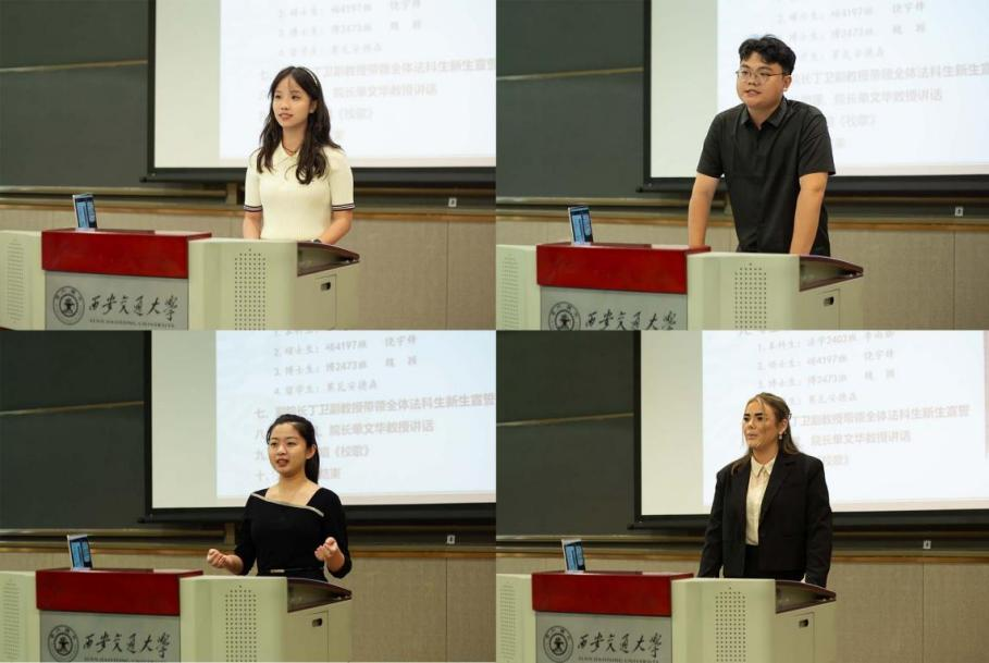 在学生代表发言环节,本科生新生代表李雨珈深情表达了对西交ld体育(中国)官方网站的期待和对努力成才报国、勇挑法治建设重任的决心与毅力。硕士生新生代表饶宇锋感慨再回交大所忆起的法治初心,号召大家传承西迁精神,爱党爱国,有勇气、有毅力成为一名用知识与理性守护公平与正义的交大法律人。博士生新生代表魏颖表示,选择了交大ld体育(中国)官方网站,就是选择了拥抱精彩,并对自己与所有同行的小伙伴们寄语,“朝前走吧,通天大道宽又阔”。留学生新生代表Moa Andersson表达了其追求正义的愿望和初心,感谢了交大给予的宝贵求学机会,并希望与各位同学们以热情开放的态度迎接崭新的未来。