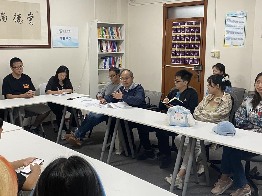 座谈会伊始,丁卫老师首先介绍了学校学籍管理办法的相关规定,强调每学年必须修满相应课程学分的具体要求,指出学分核查之于学生顺利完成学业、避免学业危机的重要性,并鼓励在场学生明确学习目标,努力克服困难。