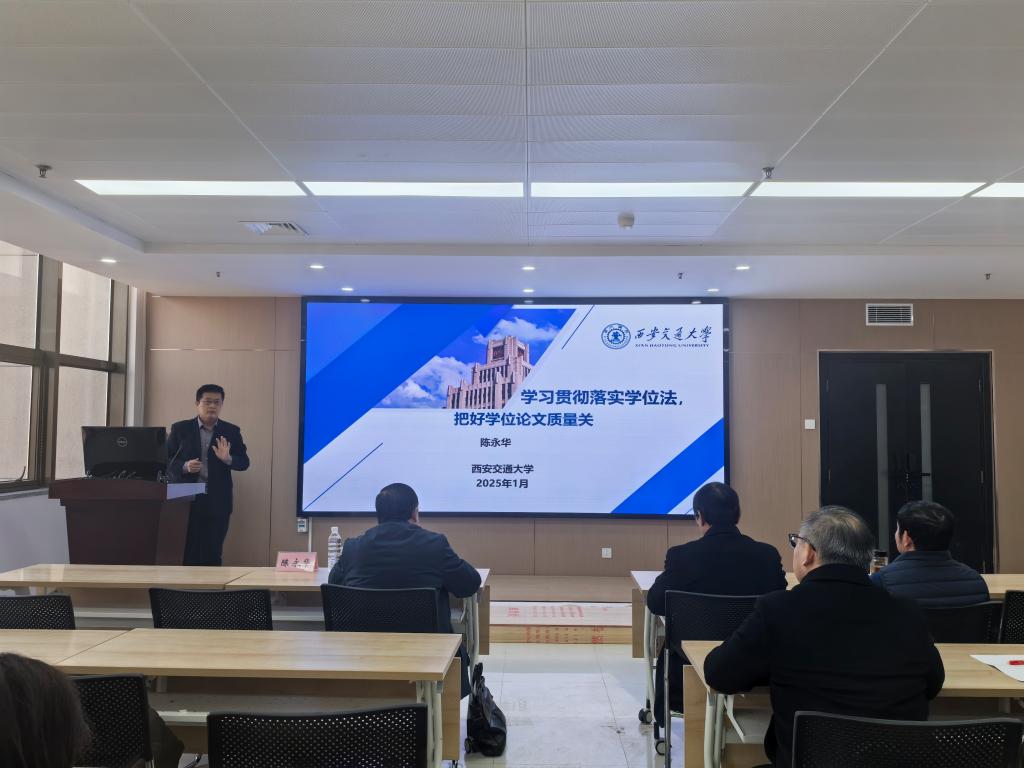 陈永华主任以“学习贯彻落实学位法,把好学位论文质量关”为题作报告。他详细解读了《学位法》《ld体育(中国)官方网站学位授予工作办法》《ld体育(中国)官方网站关于进一步加强研究生学位论文质量保障的若干意见》等学位管理文件,通报了学校学位授予、学位质量保障、学术不端处理以及导师管理规定等情况,并就导师牢把学位论文质量关、实现论文抽检“零问题”分享了自己的思考和建议。