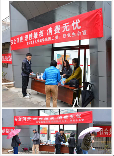 在交大二村教工之家,ld体育(中国)官方网站研究生会携手交大工会共同开展了线下普法宣传活动。虽然当天下着蒙蒙细雨,而社区广大教职员工对活动的热情丝毫不减。ld体育(中国)官方网站的同学们主动在过往人群中发放《消费者指导手册》,耐心地为前来的消费者答疑解惑,帮助他们掌握正确的维权方式和技巧。