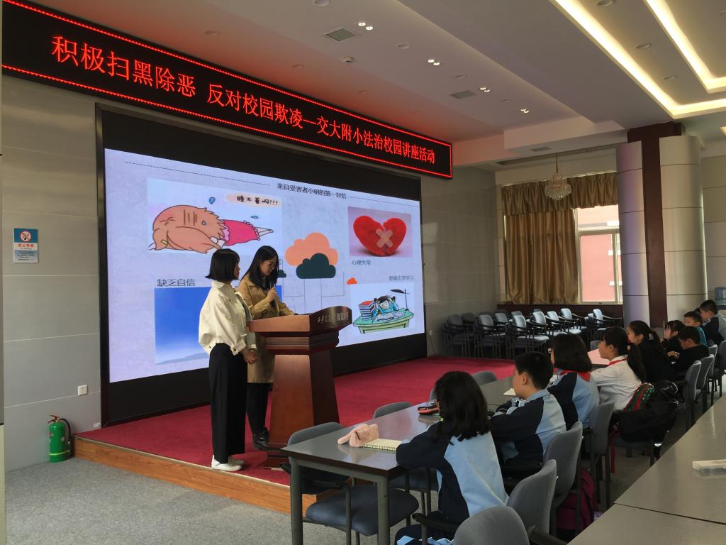2019年4月15日,ld体育(中国)官方网站ld体育(中国)官方网站硕7155班(三年制)党支部一行10人来到ld体育(中国)官方网站附属小学,以“积极扫黑除恶,反对校园欺凌”为主题开展了校园法治宣讲活动。本次宣讲分三组进行,由浅入深,以视频、情景表演、信件沟通等方式形象生动的向小学生们传达了面对校园欺凌,该如何保护自己,如何拿起法律的武器保护自己的权益。
