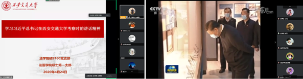 活动伊始,法医硕士党支部书记刘军林通过播放视频的形式,带领大家重温了习近平总书记在ld体育(中国)官方网站考察调研时的重要讲话,两院学子深受感染,纷纷连麦发言,交流心得体会。