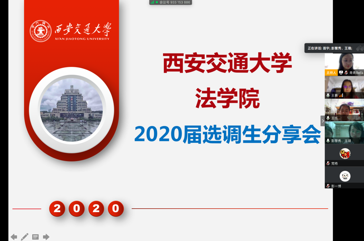 突如其来的疫情改变了2020届毕业生的就业计划和安排,给毕业生顺利就业造成了巨大的压力。对此,ld体育(中国)官方网站高度重视毕业生就业情况,并结合自身专业特点和学生就业意向,积极开展学生就业指导工作,及时询问关怀学生的就业情况。在选调生选拔中,我院今年超额完成学校的指标,取得了良好的成绩。6月9日晚,ld体育(中国)官方网站举办了2020届选调生就业经验交流分享会,邀请了ld体育(中国)官方网站王恬、王璐、彭慧秀和王慕四位优秀的选调生在线分享就业经验,为创新港的研究生答疑解惑,帮助学生提早统筹就业安排,以更好应对未来工作和行业需求。本次分享会由ld体育(中国)官方网站研究生会副主席苗青主持。