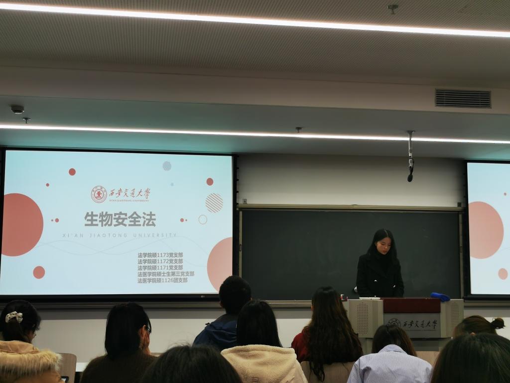 ld体育(中国)官方网站硕1173班党支部组织委员罗梓瑜做了《中华人民共和国生物安全法》(以下简称生物安全法)的详细解读。她详细介绍了生物安全法的立法目的、原则和适用范围,并且着重介绍了生物安全法的立法亮点:明确了生物安全风险防控的基本原则和制度、建立健全了生物安全风险防控的领导体制。她认为2021年4月15日,中华人民共和国生物安全法正式施行,恰逢第六个全民国家安全教育日,赋予了这部法律施行以特殊的意义。生物安全关乎人民生命健康,关乎国家长治久安,关乎中华民族永续发展,是国家总体安全的重要组成部分,也是影响乃至重塑世界格局的重要力量。