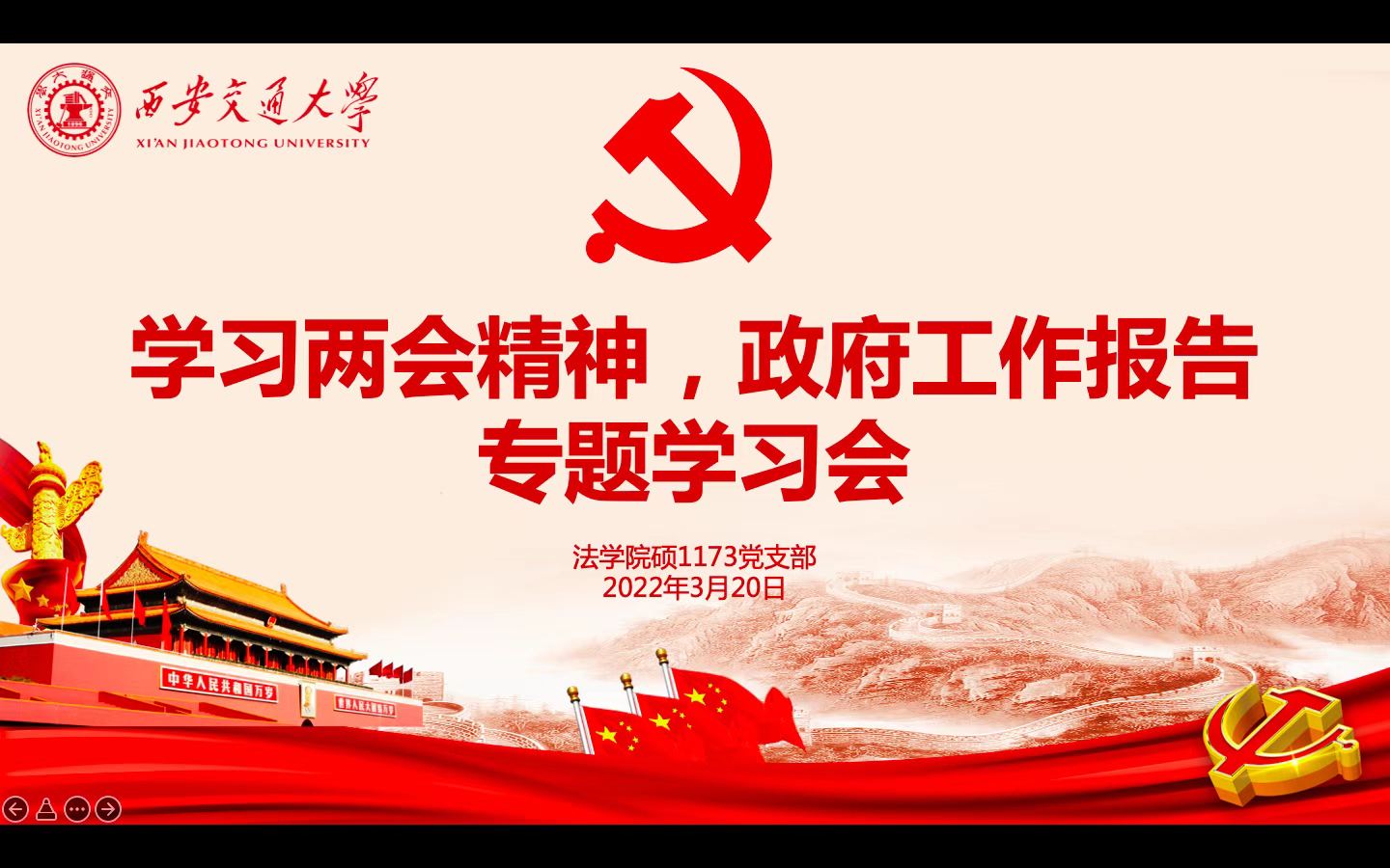 2022年3月20日ld体育(中国)官方网站硕1173班举办了主题为学习“两会“精神,坚定发展信心的专题学习会议,由于疫情的影响,本次专题学习会议仍然采用线上的方式进行。本次会议由党支部书记张一凡主持,党员及入党积极分子总共32人参与会议。