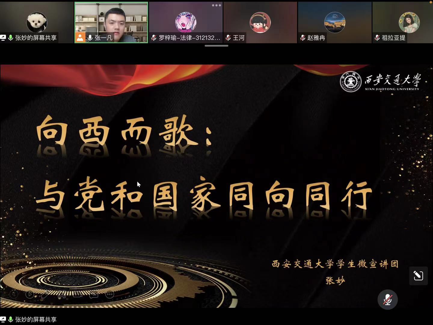 接着,支部邀请了校微宣讲团成员张妙同学做一场主题为《向西而歌:与党和国家同向共行》的西迁精神专题宣讲,我们有感于老一辈交大人义无反顾响应党的号召踏上西行之途,周淼东老师给自己的未婚妻徐婉珠的信令人动容,钟兆琳、陈学俊、陶文铨教授们的事迹感人至深,“哪里有事业,哪里有爱,哪里就有家”。“始终与党和国家发展同向同行”。西迁老教授们拳拳赤子之情深深打动了我们,西迁精神所蕴含的爱国主义也深深扎在了每一位交大学子的心中。